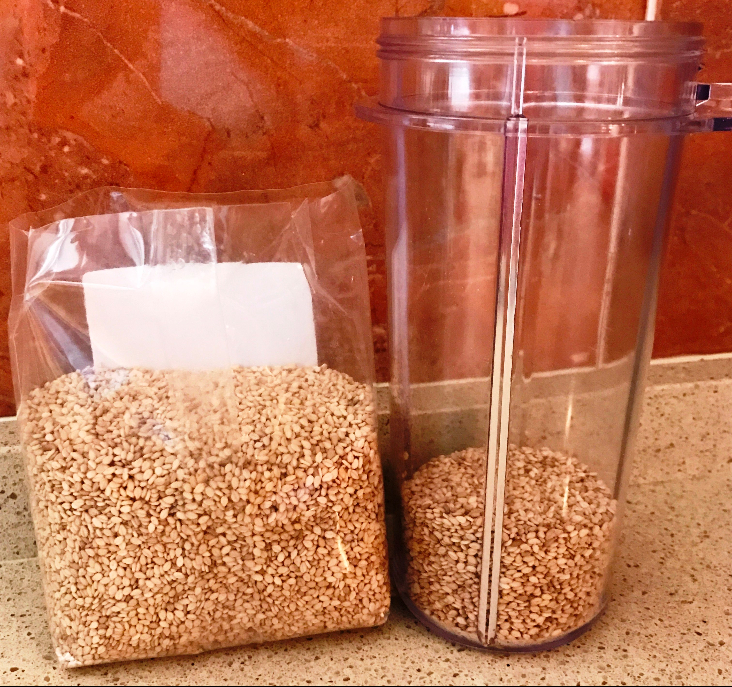 Ponga 4 cucharadas de semillas de sésamo tostadas en la batidora con el zumo de medio limón. Añadir 8 cucharadas de tamari y 2 cucharadas de sirope de ágave.