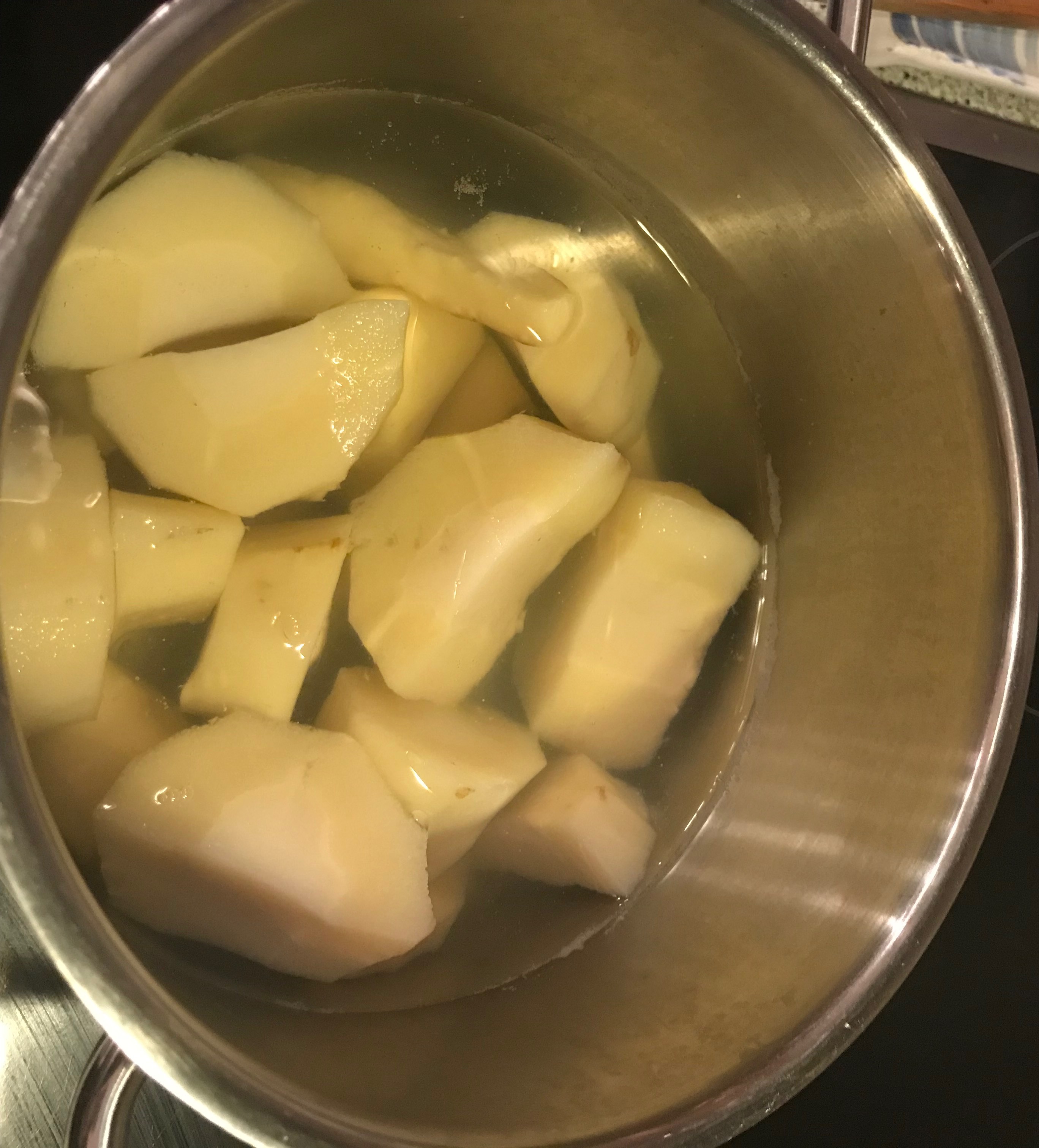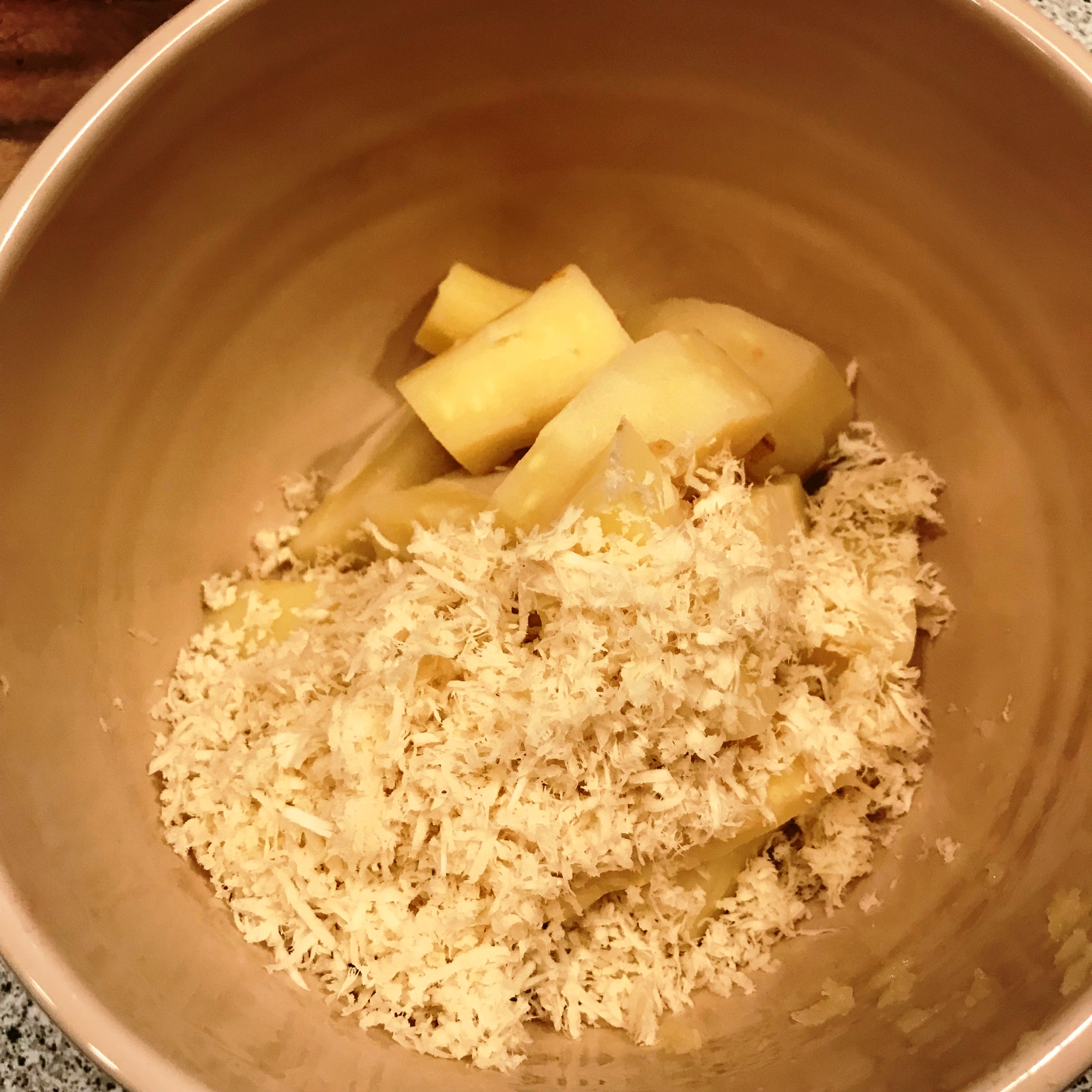 2 große Pastinaken schälen, in Stücke schneiden und dünsten.