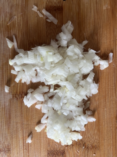 2. Zwiebeln schälen, fein würfeln.